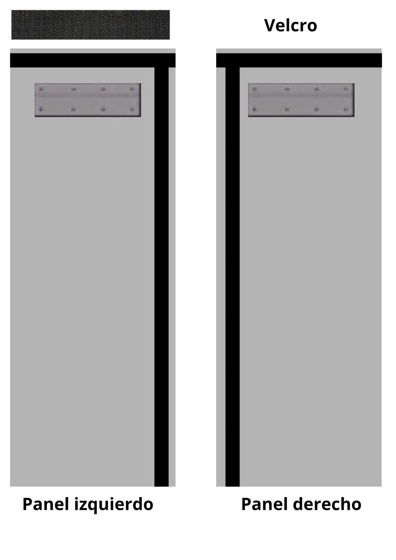 Durante la colocación del segundo panel, tome un segmento del velcro autoadhesivo delgado precortado y fíjelo a la tira LED. Este velcro permite el montaje de la iluminación. Si la longitud es excesiva, puede reducirse el tamaño del velcro mediante un corte limpio.